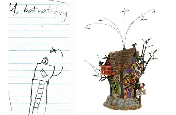 Meet Sam, a ten-year old boy who is a remarkably devoted fan of Scott Enter’s work at Department 56. In fact, the young boy would appear at various events during which the artist made appearances, and even presented drawings inspired by Enter’s work. One sketch for a haunted birdhouse was chosen by D56 to be finalized for the well-known and celebrated line of crafted works. This is a moment Sam will no doubt cherish throughout his life. And we invite you to come by St. Nick’s and see the results of this remarkable event.